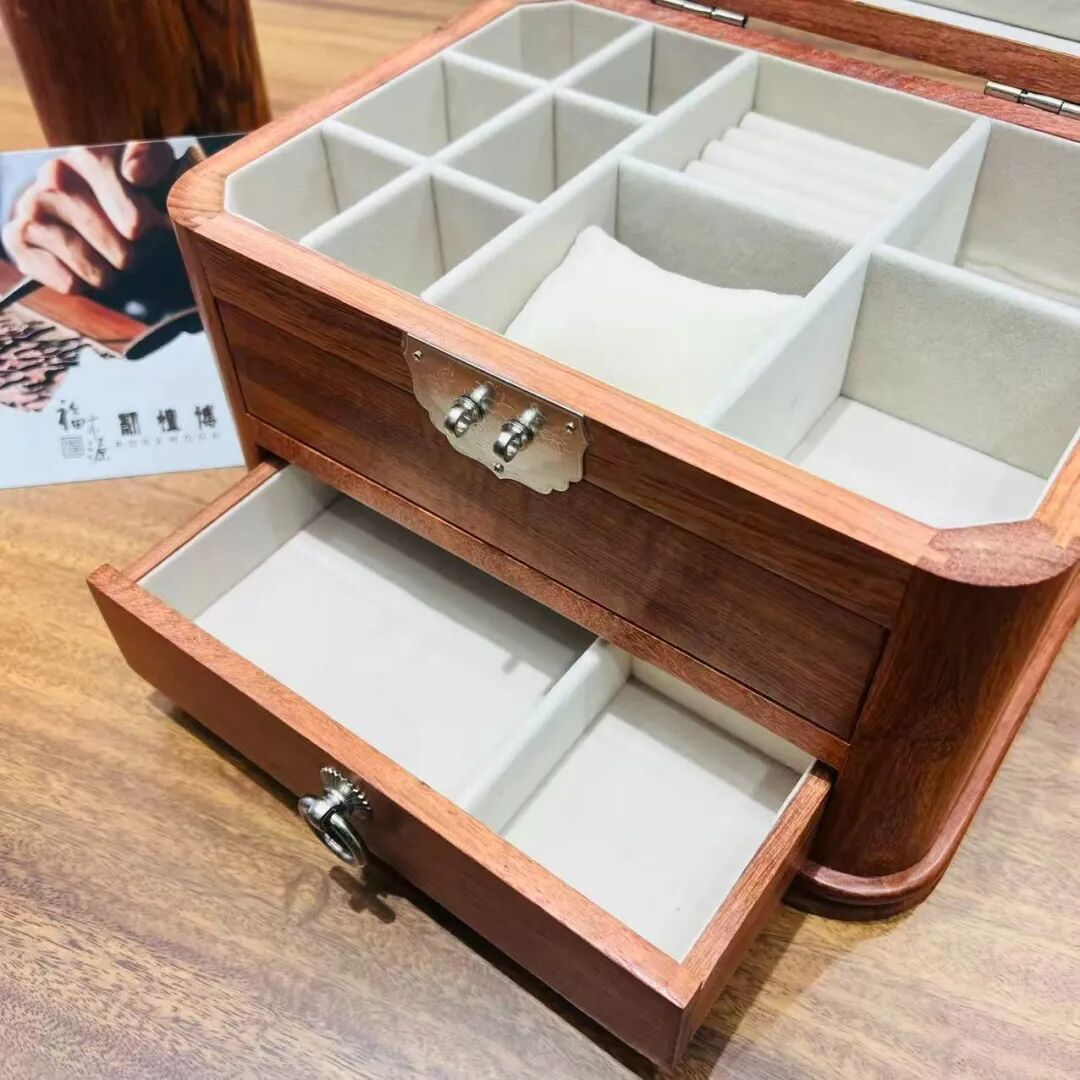 绒布隔层轻托珠宝,深屉收纳腕表玉饰,